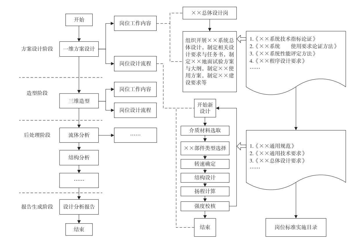 结合每一流程节点的工作内容,根据标准的不同类型和特点,对其进行文档化、结构化、参数化处理,形成不同的标准表达形式[2]。标准文档化是指在设计流程的某一过程或环节中,对于无法分解的整本标准文档或通用要求,通过整本查看或引用标准的方式与流程进行映射。标准参数化是指在设计流程的某一过程或环节中,如果需要引用标准中规定的明确数值要求或有限选择区间,将这些要求通过参数选择的方式纳入文件。标准结构化是指在设计流程的某一过程或环节中,需要引用标准中规定的标准条目或具体内容时,对其进行抽取,从而与流程关联映射。以岗位为关注点的标准规范索引模型如图2所示。