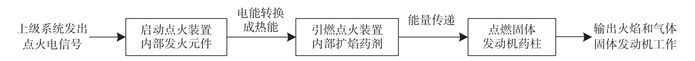 点火装置是固体发动机的重要组成部分,其作用是接收上级系统发出的点火电信号,启动发火元件引燃扩焰药剂,燃烧产生大量固体微粒和高温高压气体迅速覆盖燃烧室,从而在规定的时间内可靠点燃药柱,使固体发动机按预定要求进入正常工作状态[2],其工作时序如图1所示。