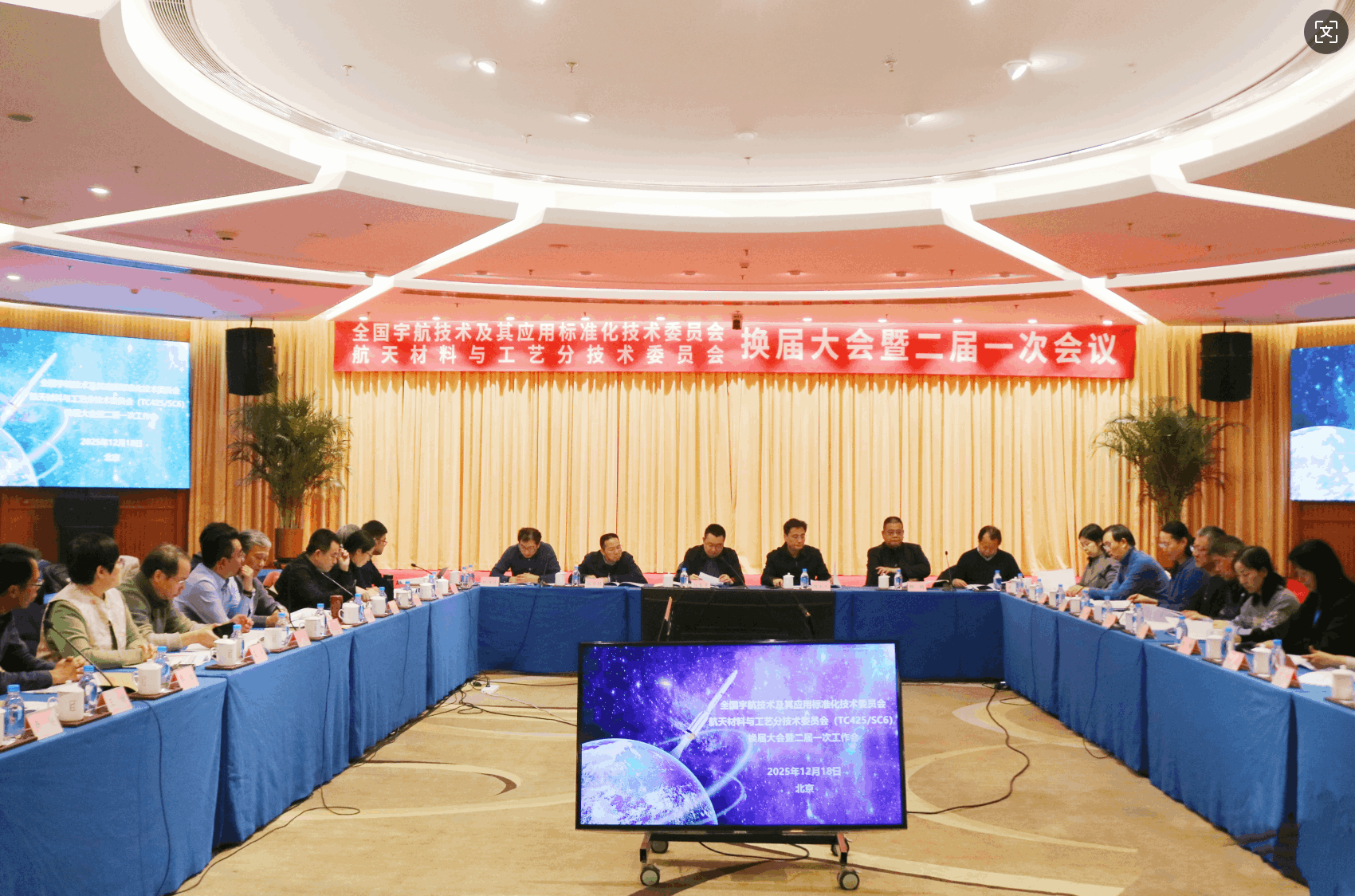 2025年12月18日,全国宇航技术及其应用标准化技术委员会航天材料与工艺分技术委员会(以下简称“分标委”)换届大会暨二届一次全体会议在北京成功召开。中国航天科技集团有限公司质量技术部赵春章处长,全国宇航技术及其应用标准化技术委员会魏永刚秘书长,第二届分标委委员及秘书处有关人员共计四十余人参加了本次会议。